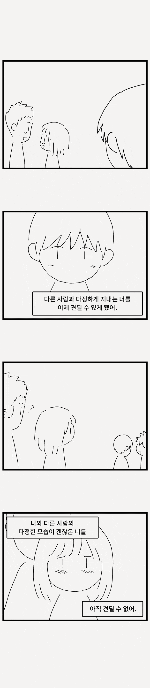 내가 다른 사람과 다정하게 지내는 것이 괜찮은 너를 나는 아직 견딜 수 없어.